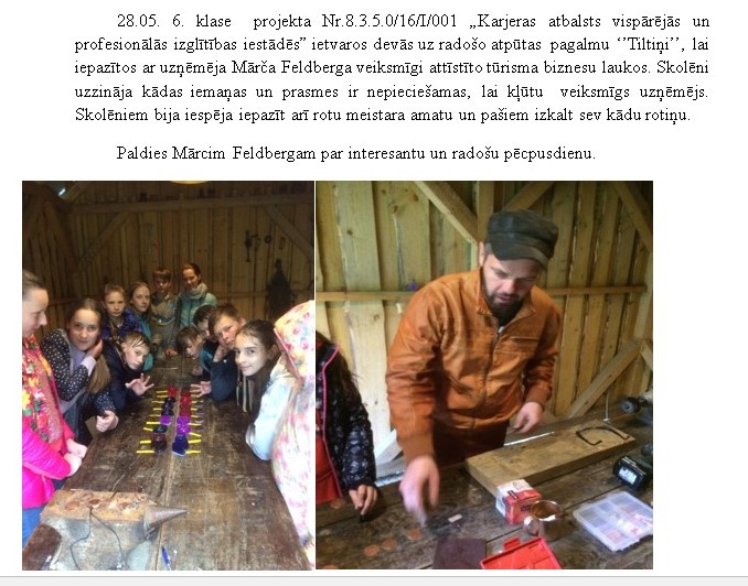 Pēc skolas apskates jaunieši ķērās pie pasākuma galvenās daļas, apmeklējot Ievas Vecvagares SIA “Ievziedi un Ogas” , Ilzes Mailītes SIA “Mailīšu Fabrika”, Gunāra Vīganta SIA “Tauri” un Mārča Feldberga atpūtas pagalmu “Tiltiņi”. Bija iespēja apskatīt dažādas nozares – floristiku, amatniecību, lauksaimniecību un tūrismu. Sākumā skolēni pēc rotācijas principa apmeklēja trīs uzņēmējus, un tad visi kopā devās pie Mārča Feldberga, kur izbaudīja un iepazina tūrisma nozari. Uzņēmēju iedvesmas stāsti bija lieliski, pārdomāti un pat ar balviņām. Ērglēnieši lieliski spēja iedvesmot un pamudināt jauniešu nebaidīties no sava uzņēmuma veidošanas un arī parādīja, ka laukos ir visas iespējas attīstīties.