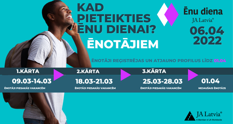 Ēnu devēji aicināti reģistrēt savas vakances portālā www.enudiena.lv līdz 28. martam, savukārt no 9. marta pieteikšanos piedāvātajām vakancēm uzsāks skolēni, potenciālie Ēnotāji.