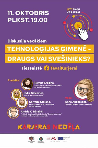 2.Tiešsaistes diskusija vecākiem/ģimenes locekļiem 11. oktobrī plkst.19:00 tiešsaistē Facebook kontā TavaiKarjerai