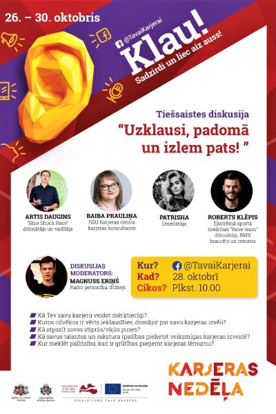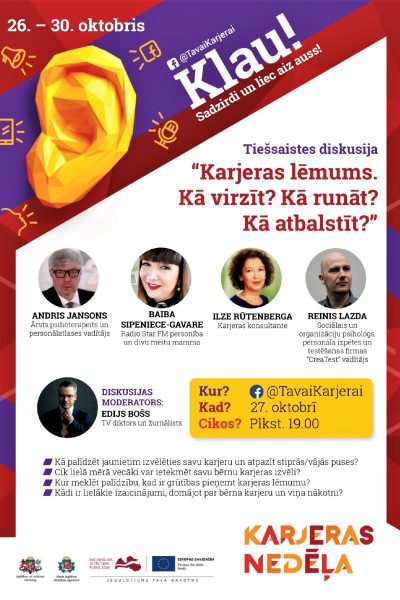 3.Tiešsaistes diskusija jauniešiem 12. oktobrī plkst.14:00 tiešsaistē Facebook kontā TavaiKarjerai