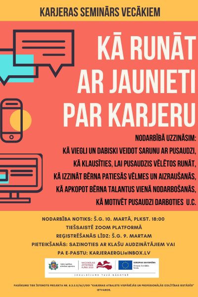 Jaunieši, vecāki un pedagogi aicināti attālinātai dalībai pasākumā.